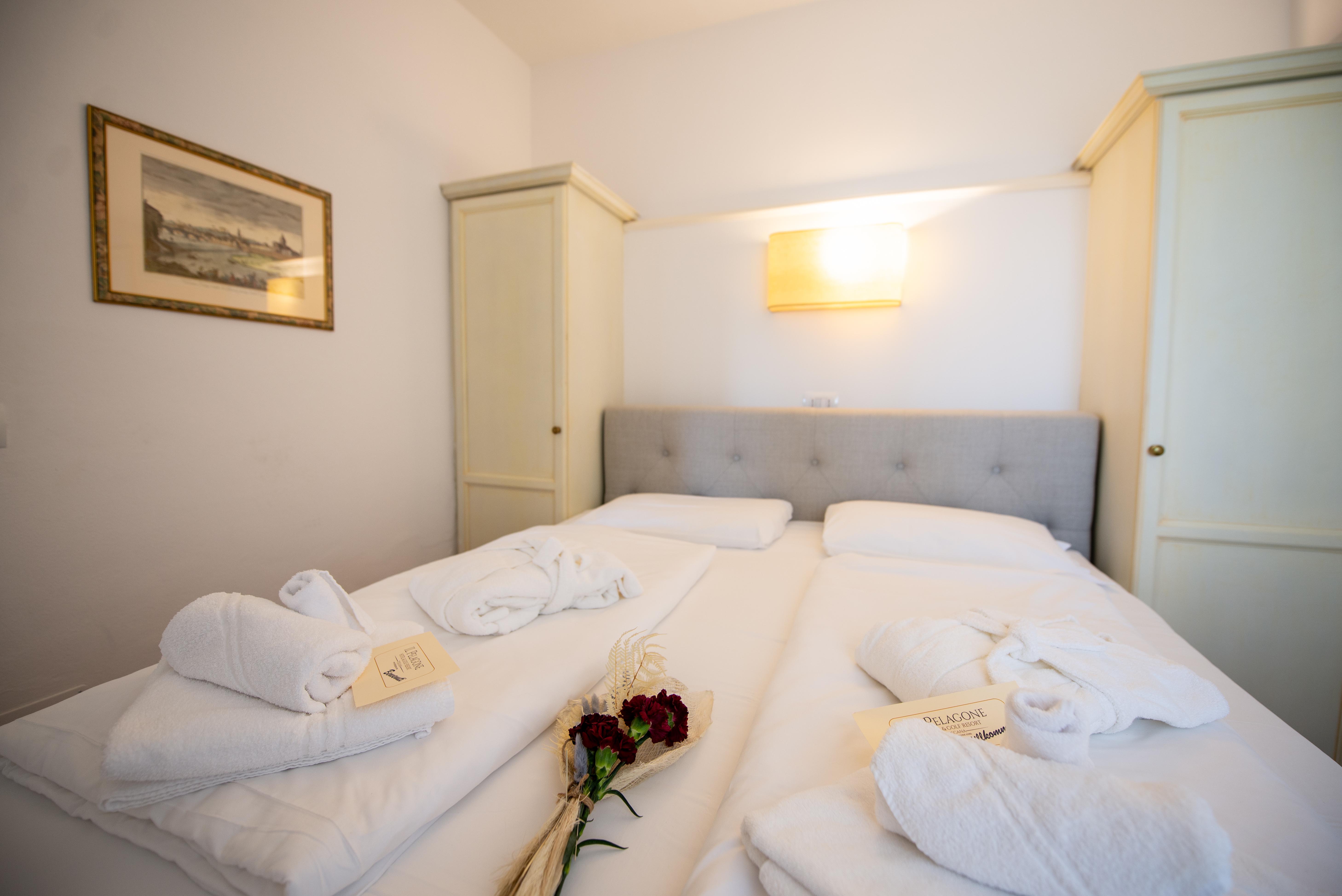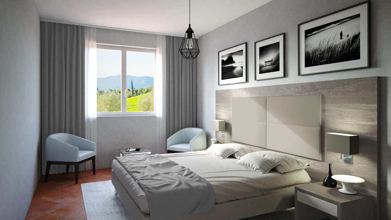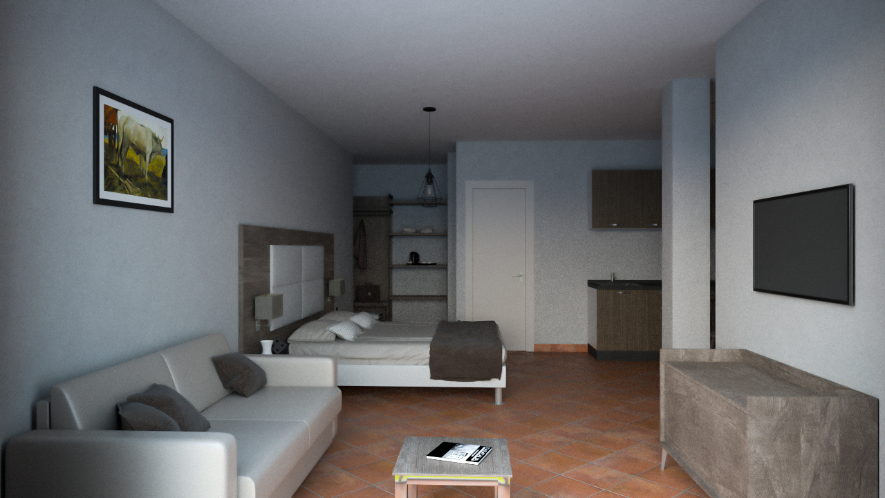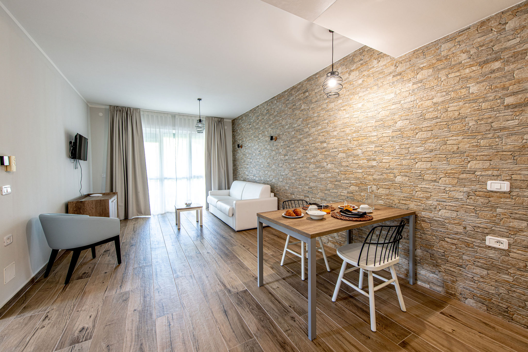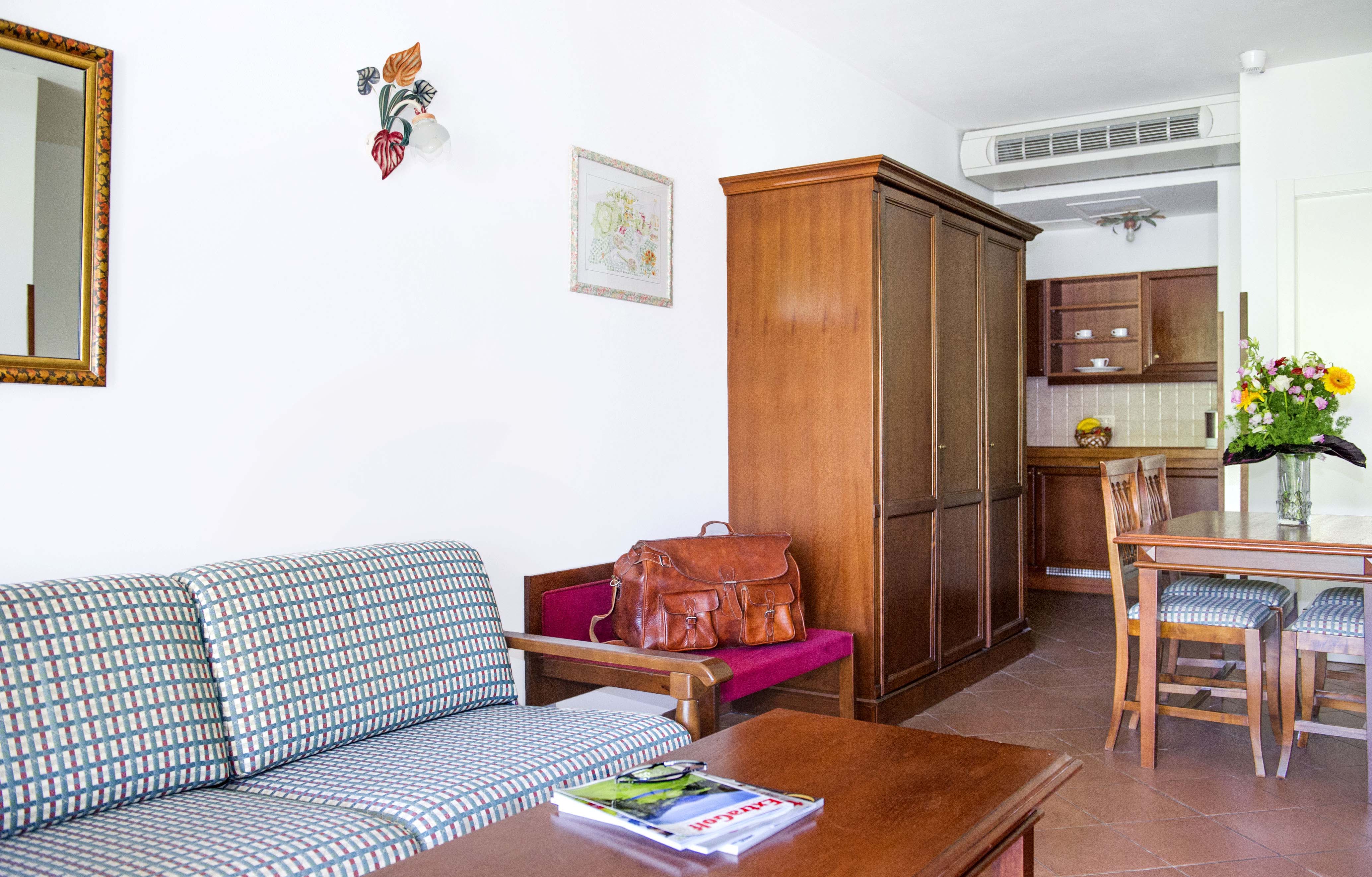 60 m² / max. 6 people / 2 double beds + 2 extra beds A 60 m² family apartment that evokes the warm atmosphere of typical Tuscan residences. It consists of 2 bedrooms with double beds, a large living room with a sofa bed, a main bathroom with shower and bidet, a second