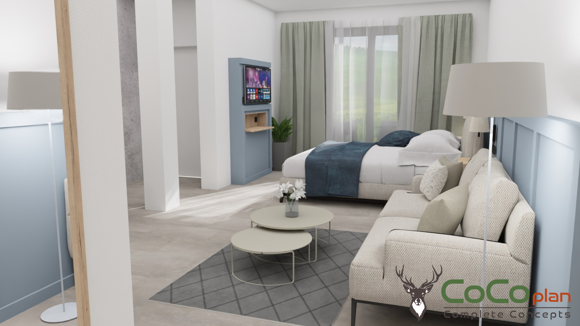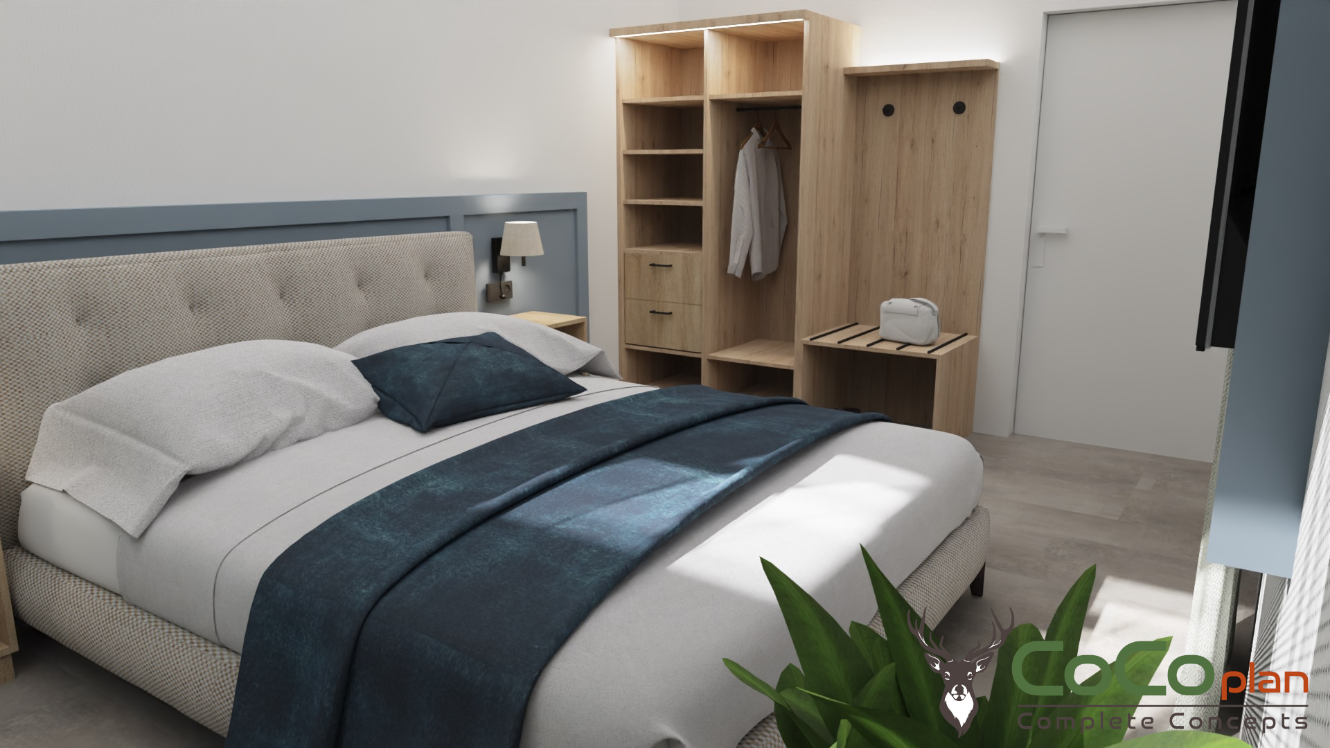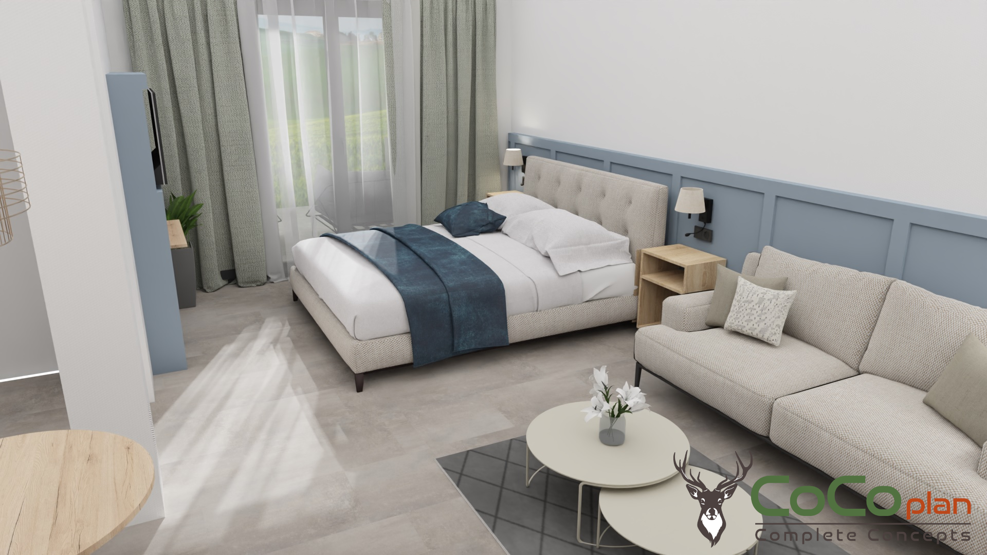 30 m² / 1-2 / Doppelbett Apartment mit einer Fläche von ca. 30 m², bestehend aus einem Schlafzimmer mit Doppelbett,